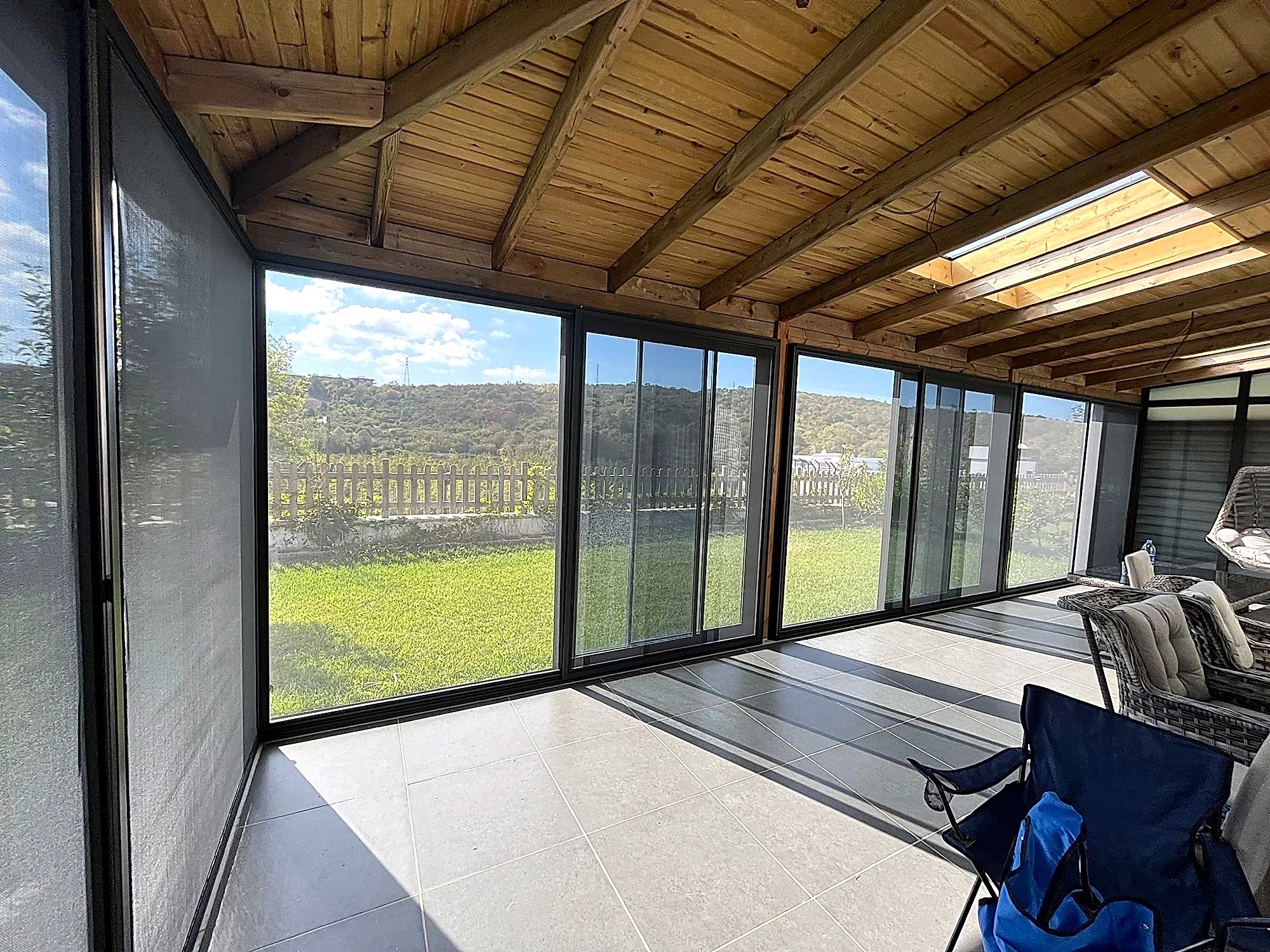 Sistemin en dıştaki rayına istenirse perde, istenirse sineklik, istenirse kepenk bağlanabilir. Bu sayede çok şık bir şekilde güneşi ve sinek geçişini kontrol edebilirsiniz.